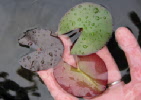Ein sehr langsames Wachstum der Jungpflanzen beobachte ich auch bei Kreuzungen mit fertilen Odorata x N. 'Helvola'. Ob dies ein Zeichen für kleinwüchsige oder eher empfindliche Sorten ist, kann ich erst in 2005 sagen, wenn diese „Mickerlinge“ den Winter überleben sollten. |
