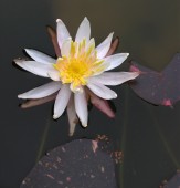 Nymphaea 'Pattern Ruby' ist ein bemerkenswertes Züchtungsergebnis mit N. 'Arc en Ciel' als Mutterpflanze. |