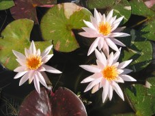 Ziel meiner Kreuzungsversuche war es, bei Erhaltung des einmaligen Schwimmblattmusters eine rot blühende Seerose zu züchten.