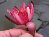 Im Sommer 2003 gelangen mir 5-6 Kreuzungen mit dem Pollen von roten Seerosen. Meine Sorte 'Rotkäppchen' war mehrmals beteiligt und ich probierte auch einen Pollenmischmasch (Pollen verschiedener roter Seerosen) aus.