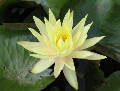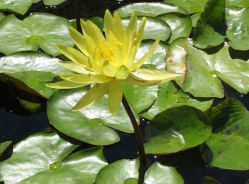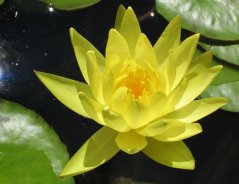 Unter den neuen gelben Seerosen nimmt N. 'Joey Tomocik' einen Spitzenplatz ein. Der Farbton ist besonders intensiv und der Ausbreitungsdrang nur mittelstark. In 30-40 cm Wassertiefe zeigen sich ca. 10 cm große Blüten. Die Schwimmblätter erreichen ca. 14 cm Durchmesser. Als bemerkenswerte winterharte gelbe Neuzüchtung erhielt diese Seerose auch in Deutschland Auszeichnungen. |