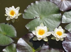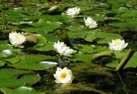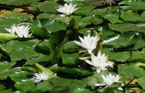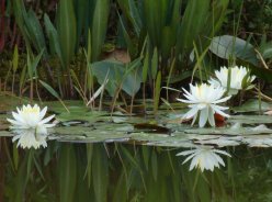 Kleine weiße Seerosenarten wie Nymphaea tetragona sind gefragt. Diese Seerose ist eine kleine Wildform mit einem Blütendurchmesser von 2-4 cm. Der Blütenreichtum kann unterschiedlich ausfallen, da es verschiedene Formen gibt. Die günstigste Wassertiefe liegt bei 15-30 cm. Bei eingewachsenen Seerosen erreichen die Schwimmblätter 10-12 cm Durchmesser. Diese Seerose wächst senkrecht ohne Ableger, bildet aber reichlich Samen. |