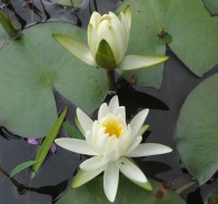 Aus Nordamerika stammt diese empfehlenswerte weiße Seerosenart. Diese Seerose bildet Ableger und Samen. Die Blüten erreichen in 30 cm Wassertiefe ca. 8 cm Durchmesser und stehen 3-5 cm über dem Wasser. Die grünen Schwimmblätter besitzen ca. 12 cm Durchmesser. Mit diesen Eigenschaften eignet sich diese kleine duftende Seerose ideal für kleine Gartenteiche. |