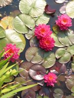 Reichblütige rote Seerosen